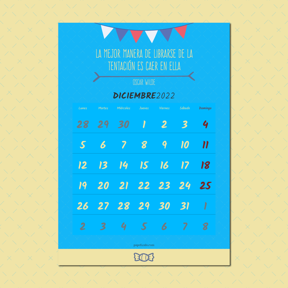 Calendario Diciembre 2022 aesthetic