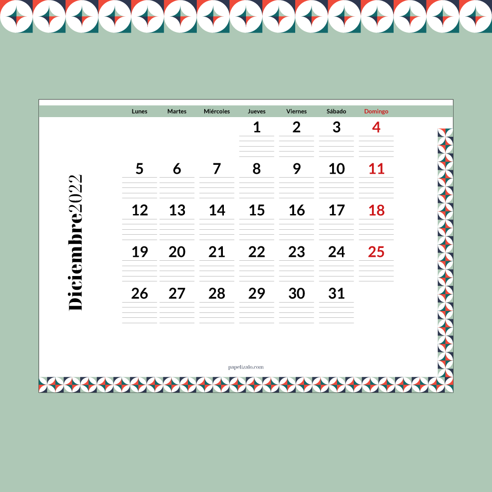 Disfruta y planifica tu año con este calendario de Diciembre de 2022 para escribir. Aquí podrás descargar el calendario de todo el año o solo el mes que te interese. Lo tienes disponible en dos orientaciones diferentes.