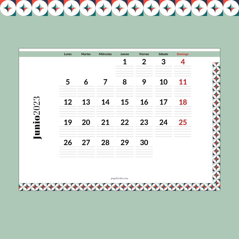 Calendario Junio 2023 para escribir PDF para imprimir – Agenda Junio 2023 imprimible