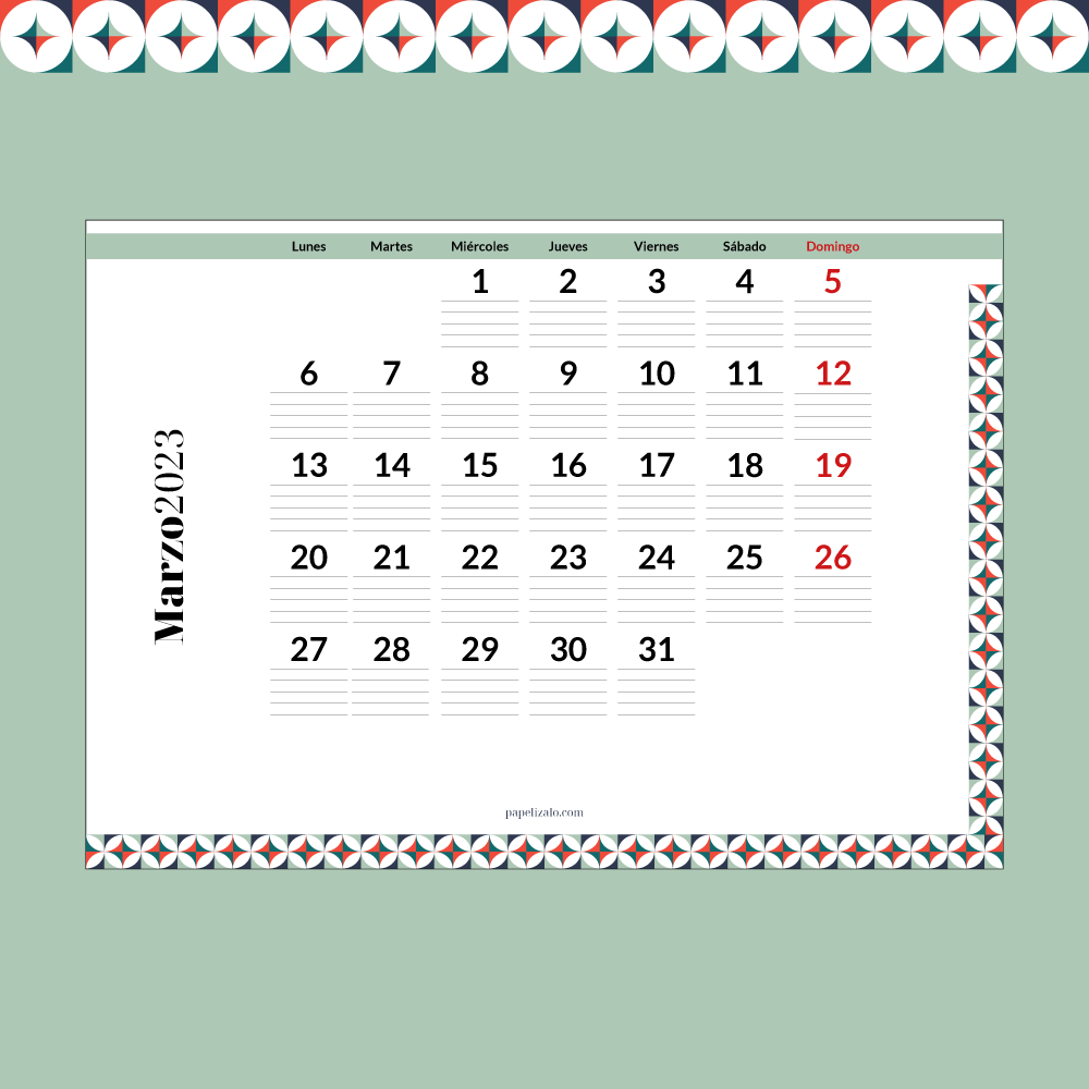 Disfruta y planifica tu año con este calendario de Marzo de 2023 para escribir. Aquí podrás descargar el calendario de todo el año o solo el mes que te interese.
