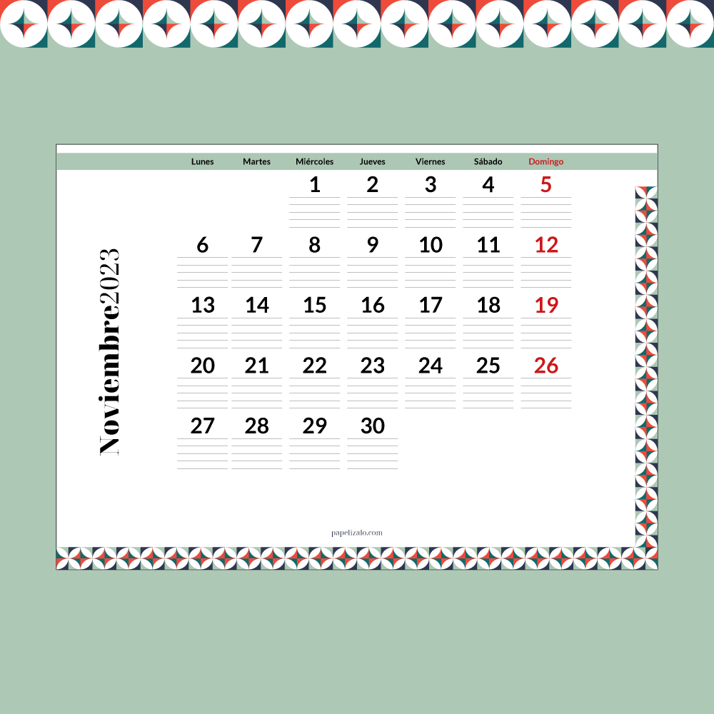 Disfruta y planifica tu año con este calendario de Noviembre de 2023 para escribir. Aquí podrás descargar el calendario de todo el año o solo el mes que te interese.
