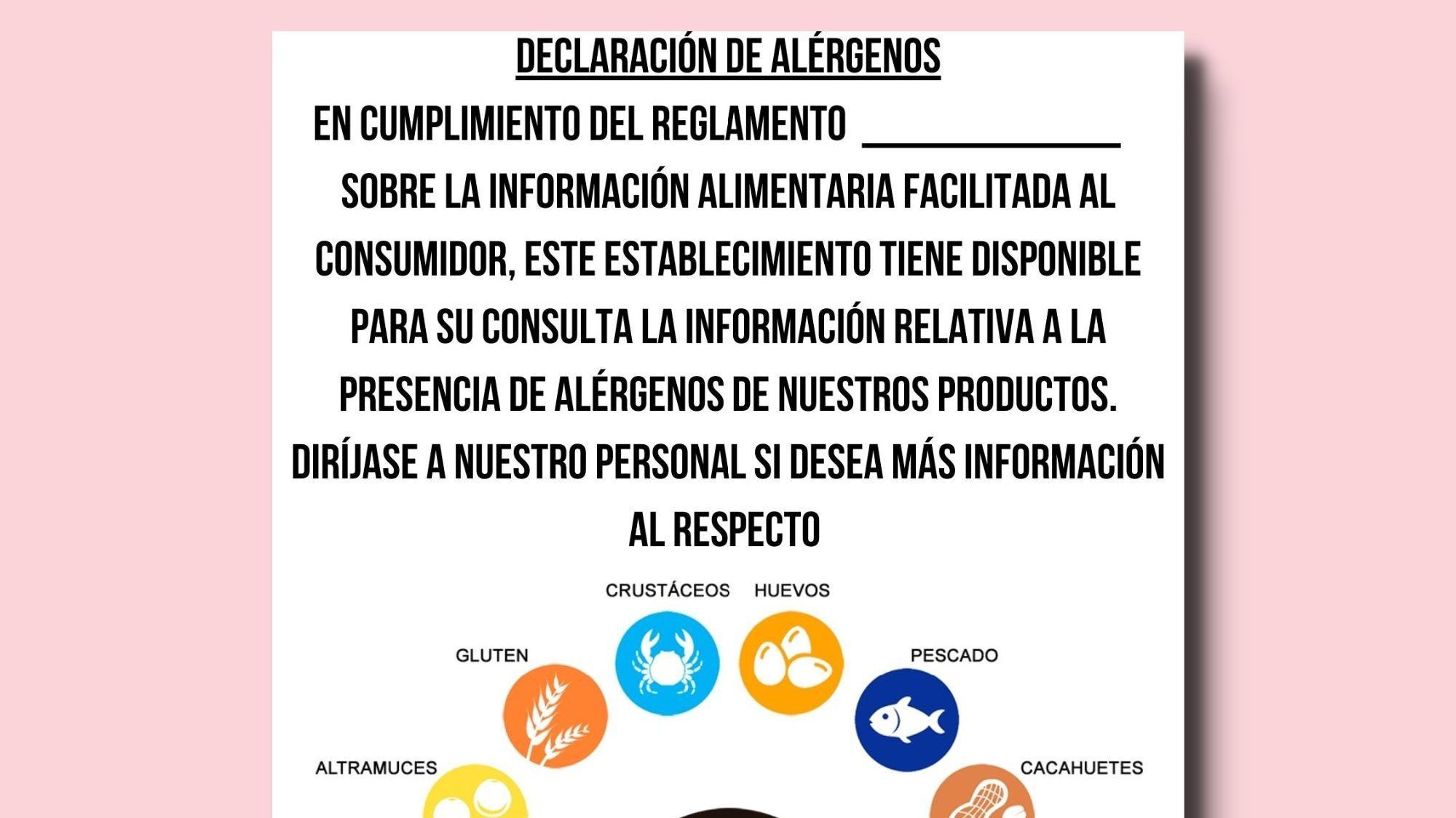 Cartel de declaración de alérgenos