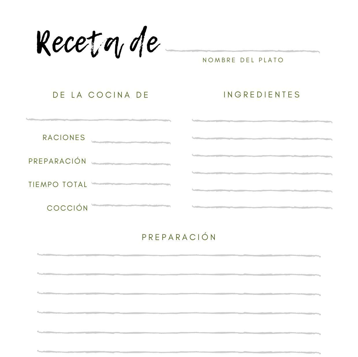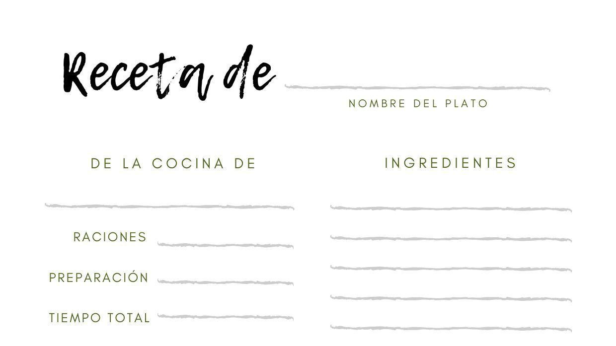 Plantilla receta de cocina para imprimir
